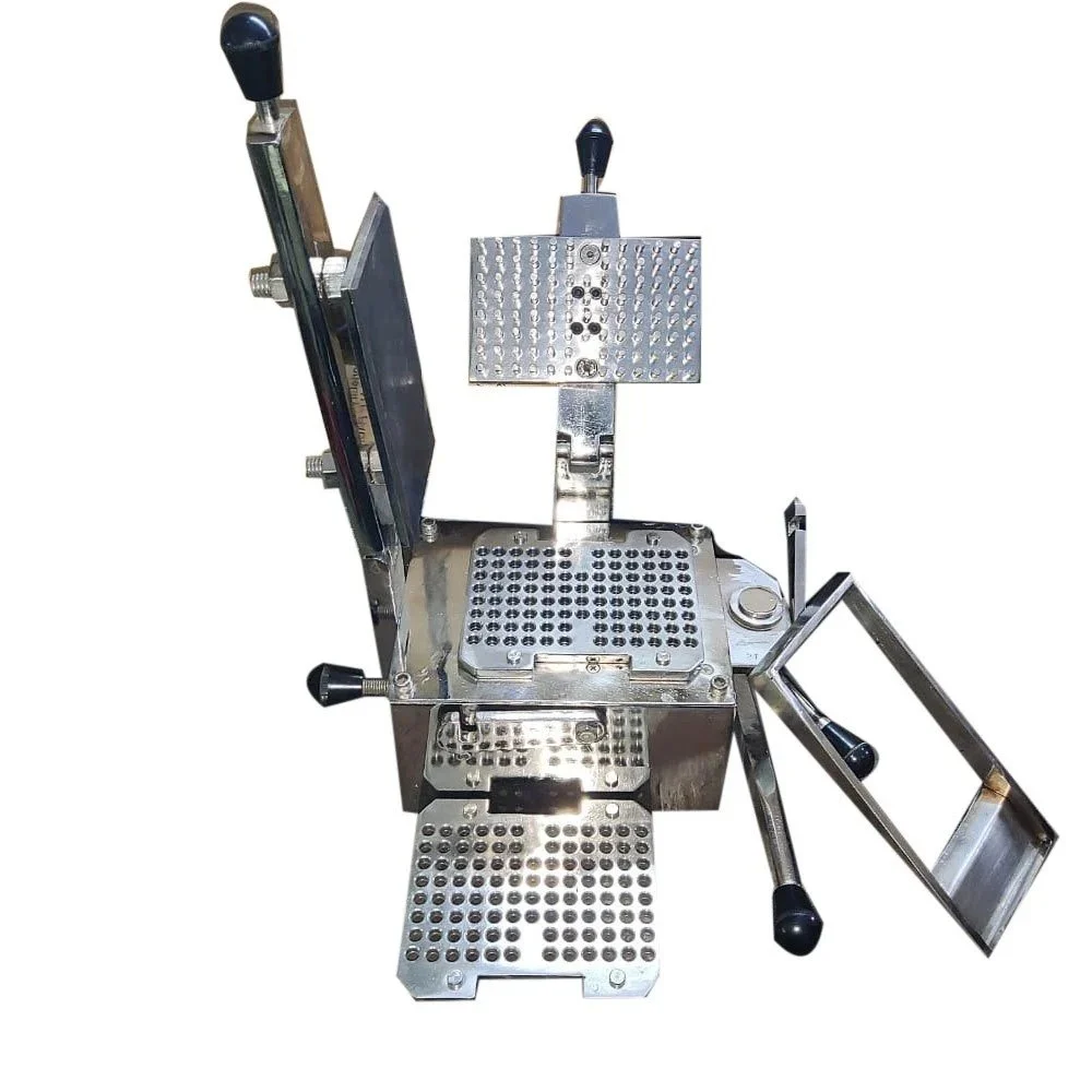100 Holes Capsule Filling Machine is small table top machine suitable for pilot batch productions. Machine is having 100 holes with 10 x 10 combinations made in Stainless Steel constructions meeting GMP requirements. Machine can fill size 00 to size 5 capsules with help of different machines and interchangeable parts. Assembly has been done in such a way that it can be easily dismantle for cleaning operations. Though all the operations are manual, the machine calls for precision machined components and assembled with highly skilled personnel. Machine having wide usage in R&D laboratories, Research Institutions, Herbal & Nutraceutical preparations, Unani & Ayurvedic medicines etc.